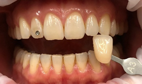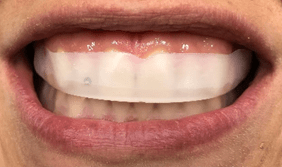 Nakon korištenja svih 10 udlaga, pacijentica je došla na kontrolu. Bila je vrlo zadovoljna rezultatima — tamni vratovi zuba su posvjetljeni, te je sveukupna nijansa po VITA kluču boja postala A2. To je u skladu sa očekivanjima, obzirom na blagu koncentraciju proizvoda i prijašnja iskustva sa sličnim slučajevima.