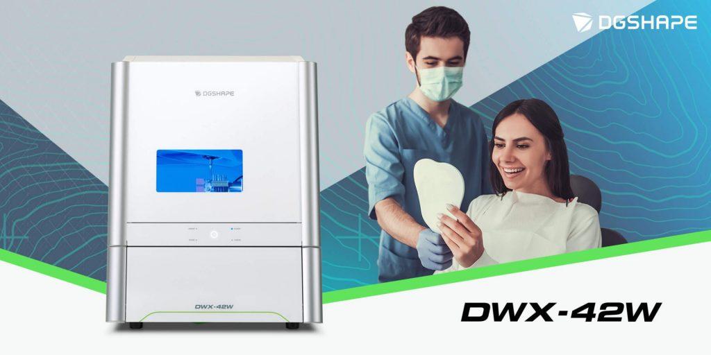 DGSHAPE DWX-42W mašina je kreirana da odgovara potrebama mokrog zubnog glodanja. Krasi ga nevjerovatna preciznost i mogućnost vrhunskih estetskih restoracija. Zahvaljujući Automatic Tool Changeru (ATC) za šest alata, za 50% je brži od svih dosadašnjih generacija uređaja za zubno glodanje, a posebno dizajnirani dvojni filteri traju duže, čime štedi vrijeme i novac.